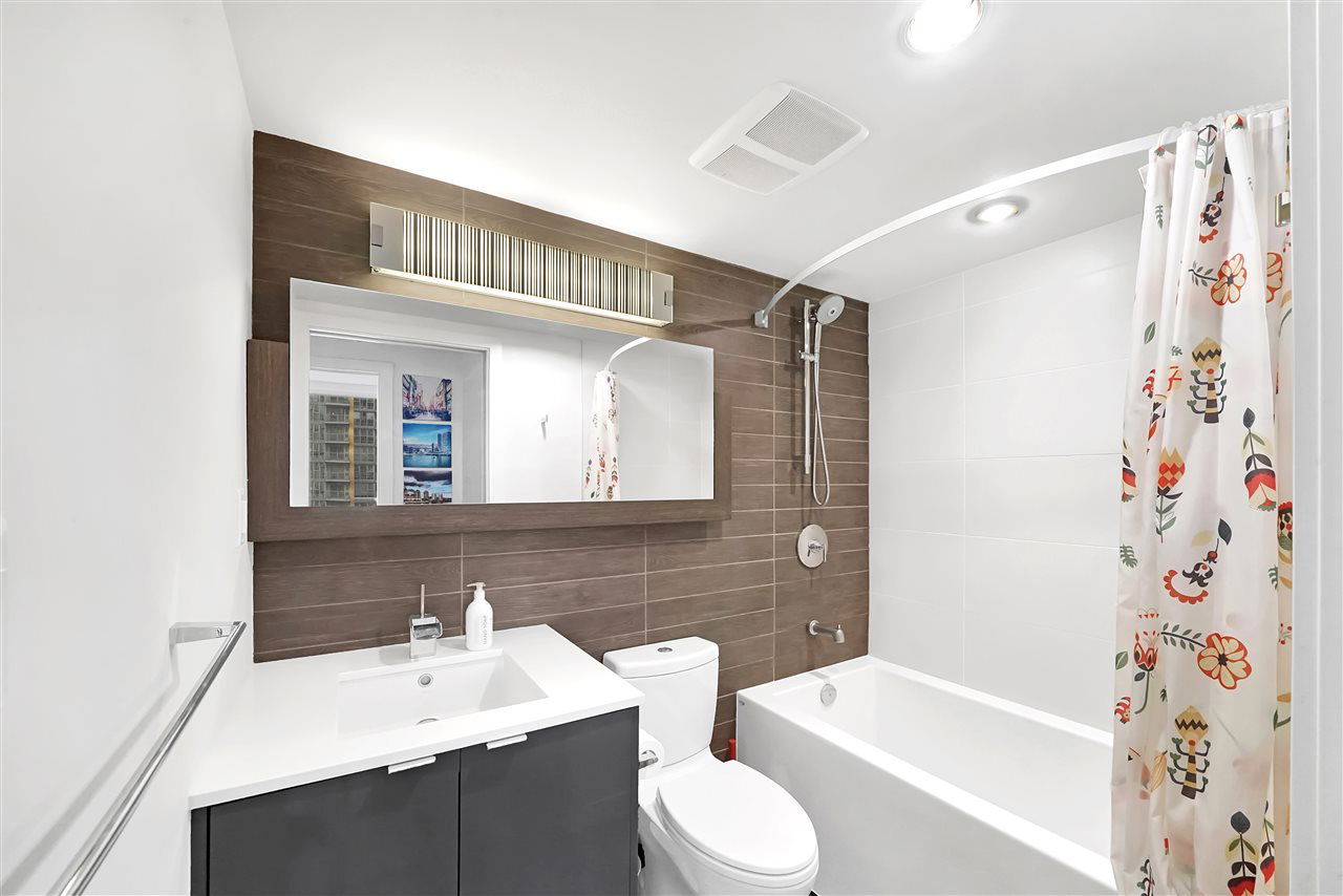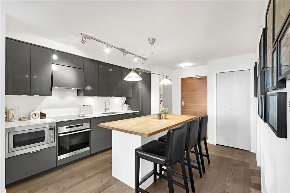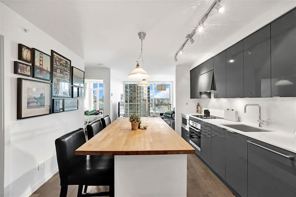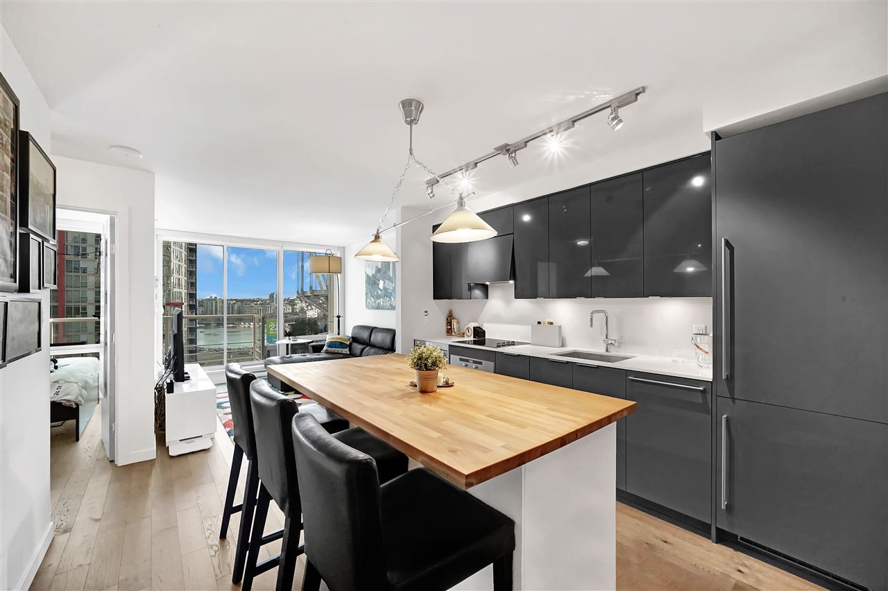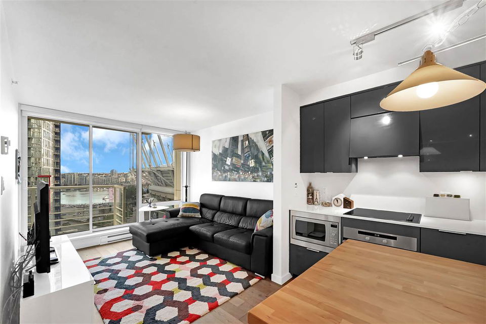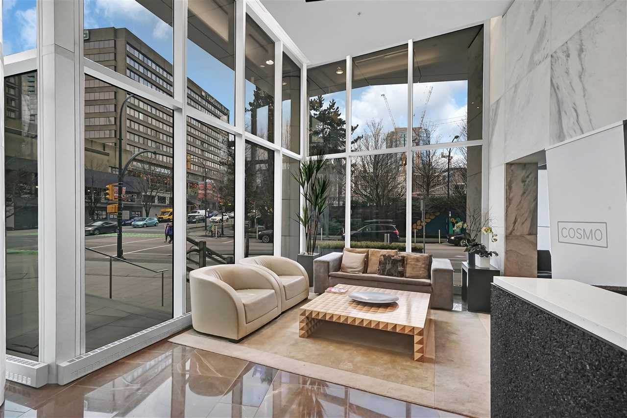 Welcome to one of the most beautiful units at Cosmo. This spacious one-bedroom and den unit has been upgraded with engineered hardwood floors, built-in appliances, and a beautiful custom butcher block eat-in kitchen island with LOADS of extra storage, and offers a beautiful view of False Creek and BC Place. Cosmo is situated in one of the best locations in Downtown Vancouver, and is only a few minutes walk to schools, shopping, the Skytrain, and best of all $1.50 Costco Hot Dogs at your doorstep! Cosmo also boasts the most unique amenities in all of Vancouver… With a 2 lane bowling alley, rooftop hot tub and fire-pit, gym, pool, sauna, and so much more!! One parking stall is included. Check out our Open House this Sunday February 2nd from 2PM to 4PM.