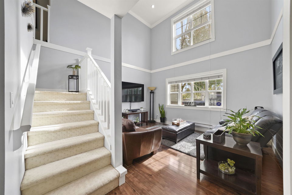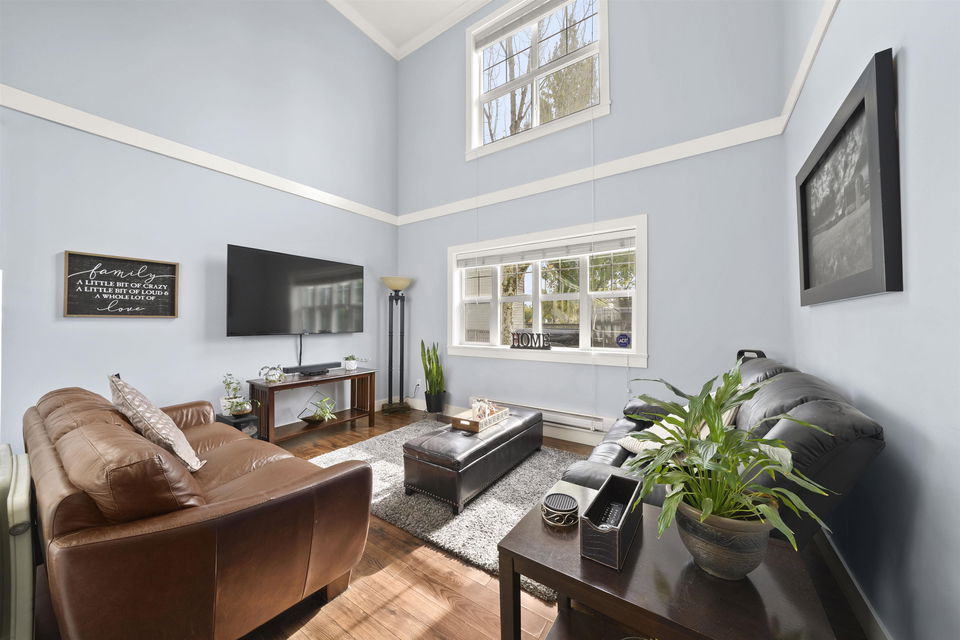 Welcome to your home at Duet, an end unit townhouse that feels like a detached home. With 2200+ sq ft over only two levels and a side by side double garage, there is room to spread out. Of the 4 total bedrooms, two feature large walk in closets and ensuite bathrooms (including one on the main level with a separate entry). Enter into your main level with 17 foot double height ceilings and two living rooms. 4 total bathrooms and the largest private backyard in the Complex complete this rare find across from Thomas Haney School and Telosky Stadium, and only a short walk to Golden Ears Elementary. Bring your big furry friends as 2 pets are allowed any size! Book your private showing today or stop by our Open House Saturday October 28 from 1-3PM!