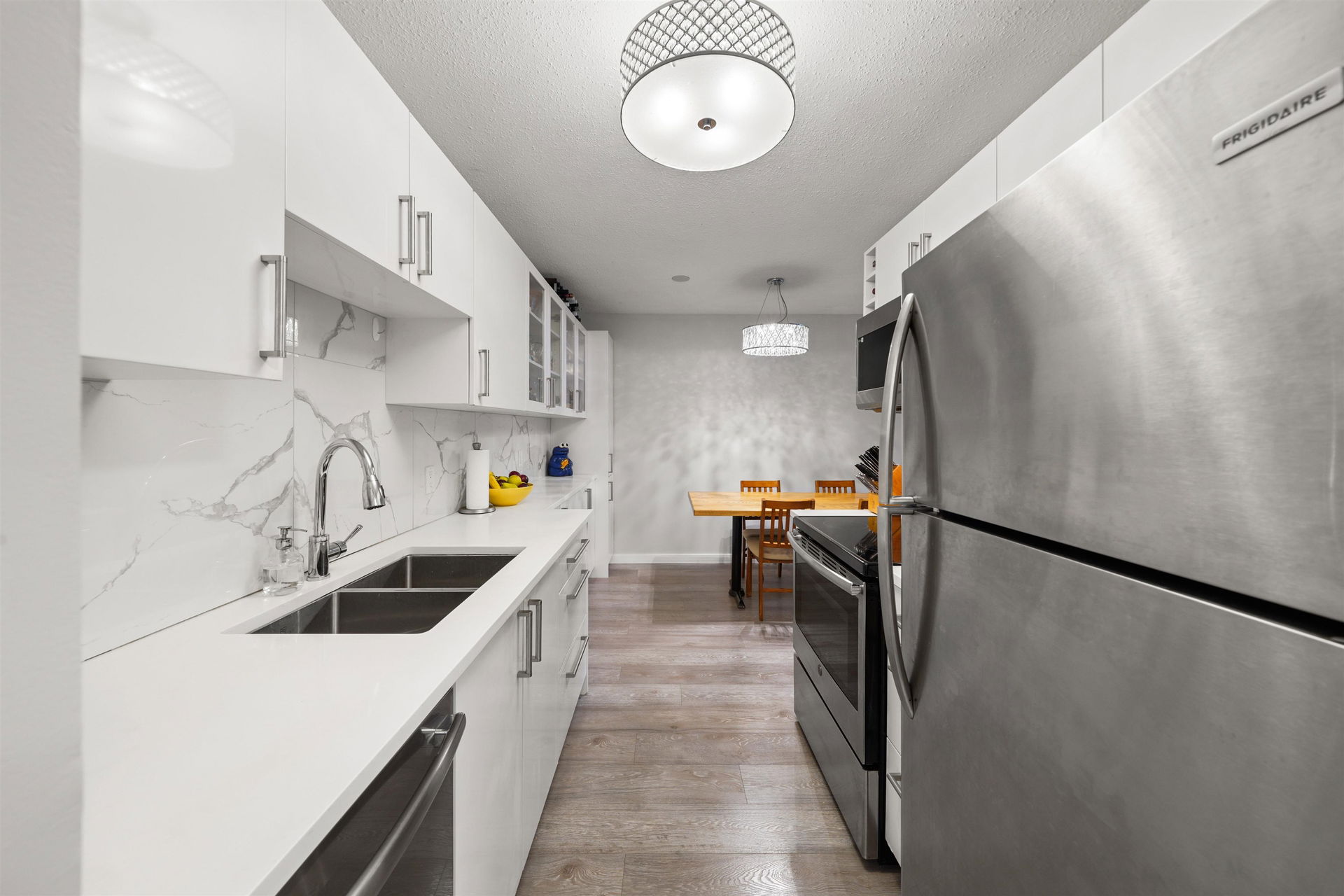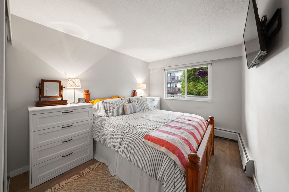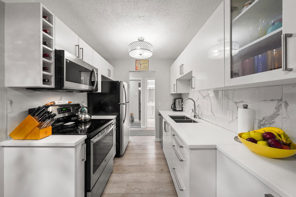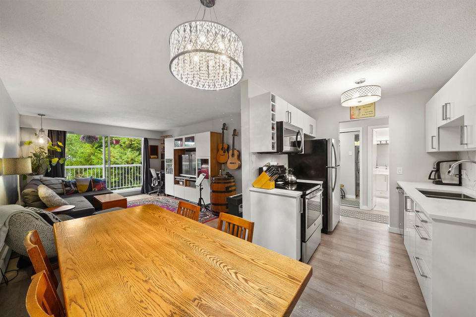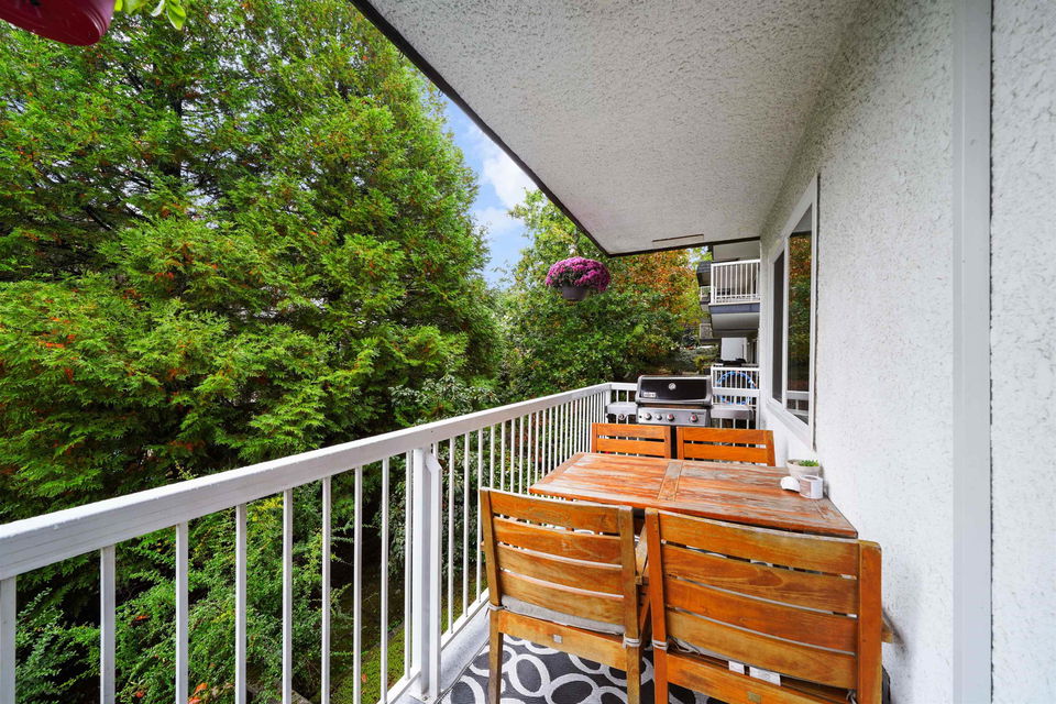 Westcliff Arms by Bosa! This beautifully renovated unit on the quiet side of the building features a large west-facing patio with plenty of space & light. This is a building with a strong reputation for maintenance, and has completed many recent capital projects including windows & patio doors (2023), balconies (2019), boiler (2017), roof (2008), and plumbing (2006). Your new home was extensively renovated in 2018, including a large kitchen with plenty of counter space and storage, two fresh bathrooms, as well as flooring and paint throughout. In the desirable Capitol Hill School Catchment. Amenities include a retro amenity space, sauna and large bike room. Includes 1 parking & 1 storage, with additional storage and parking available. Pet friendly for a big dog (or cats).