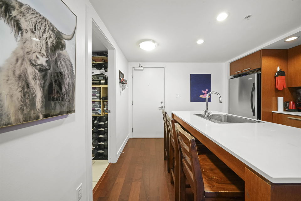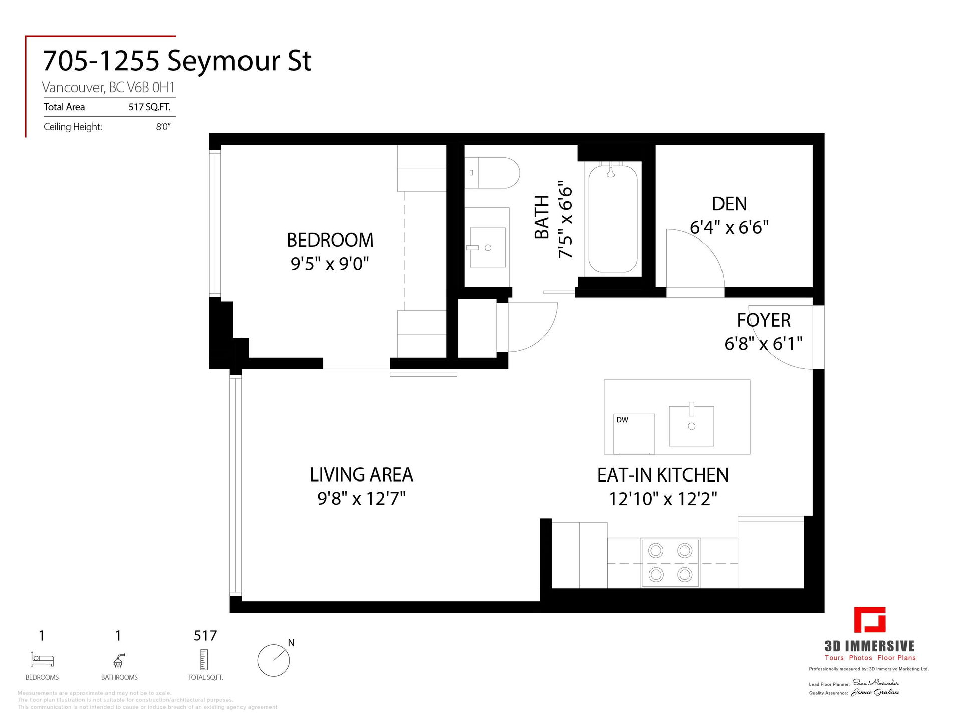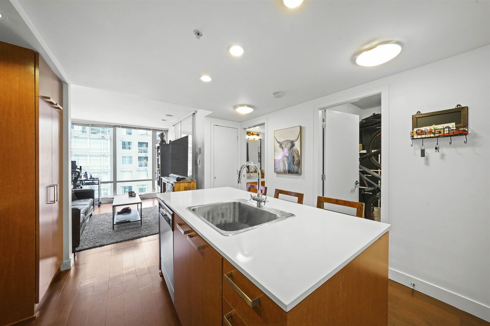 Welcome to Elan on Seymour… This PERFECTLY laid out 517 square foot one-bedroom and den has ZERO wasted space, when you walk into Unit 705 you will be blown away by how large it feels, with a HUGE eat-in island that can comfortably seat up to three people, very spacious living room, and a large den. Unit 705 faces West and boasts so much natural light. The bedroom comes with built in closets and enough space to fit a Queen Bed comfortably. Unit 705 comes with a great parking stall on P1 and a large storage locker. Rentals are allowed. Call your REALTOR and book your Private Showing today! Offers being looked at anytime!