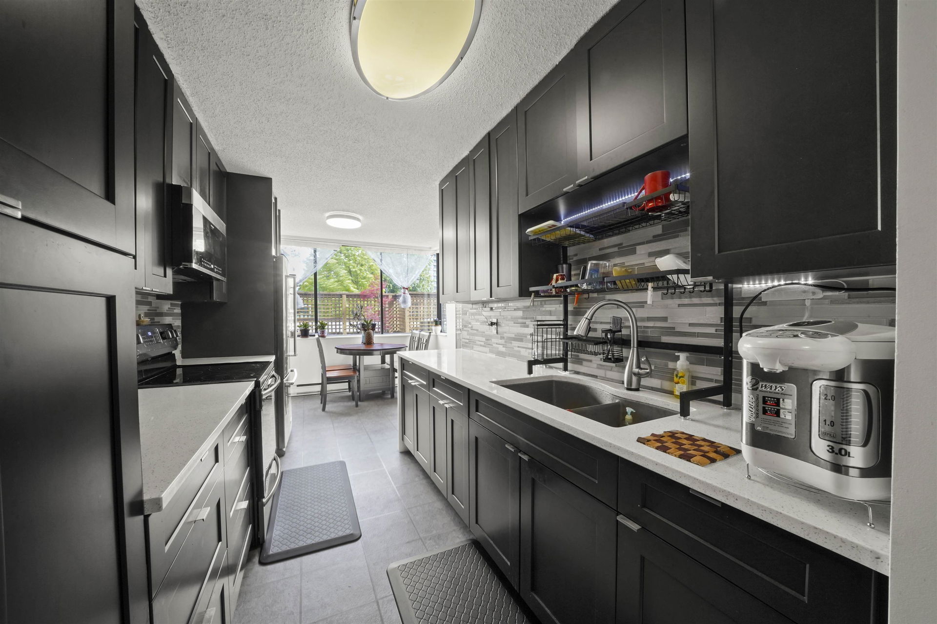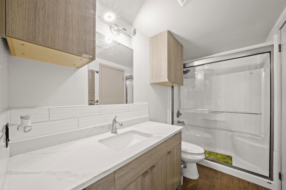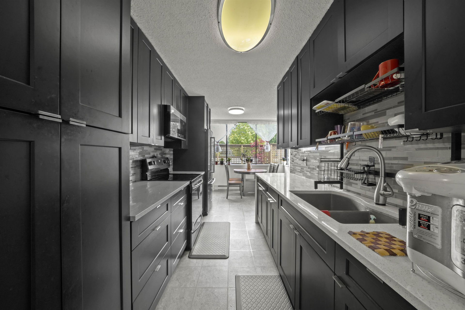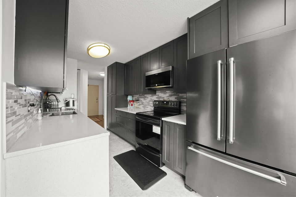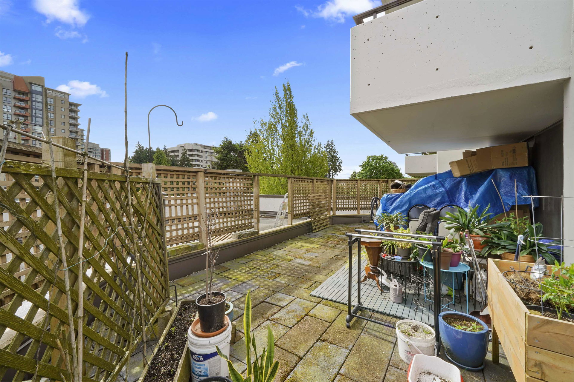 A rare treasure in an incredible location! Over 2100 sqft of space (yes, you read that right). This 955 sqft 2 bedroom 1 bathroom home features the patio of your dreams – 1175 sqft of outdoor living space that wraps around your home. Located in the heart of Highgate, a less than 2 minute walk to all your shopping needs, this home has it all. Renovated kitchen features new appliances & custom cabinetry for all your storage needs. The bathroom has been updated with lots of storage and a new stand up shower. Have more stuff? No problem! There is also a storage locker on site for you to use. Do you drive? No worries – home has one parking with the potential to rent another space. No rentals allowed and no pets, sorry.Offers anytime, call your agent to view! Open House July 9/10 (Sat/Sun) 2-4pm