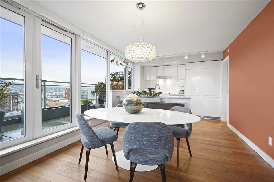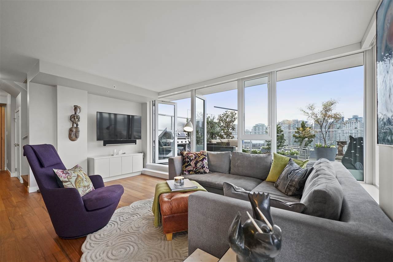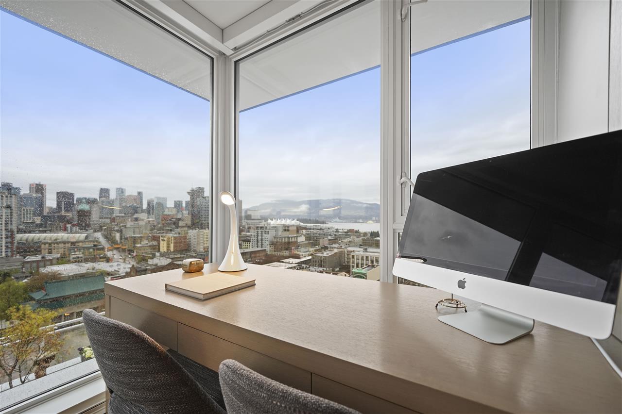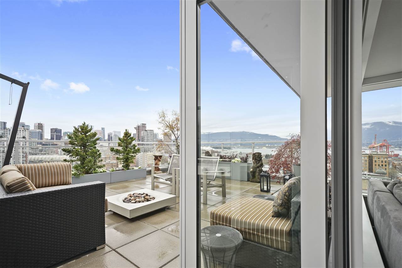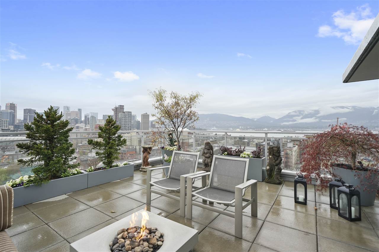 Welcome to 188 Keefer! This incredible two-level, two bedroom and three bathroom, corner unit Penthouse is situated in the heart of Chinatown in the tallest building in the neighbourhood! You will NEVER lose your views! This home is an entertainer’s dream, with 550 square feet of patio space off of the main floor, with a built-in gas fire pit and custom planters for privacy. The second bedroom has been converted into a custom office, that still has room for a bed. Sweeping North-West views of the North Shore, Downtown, False Creek, and the surrounding area, with complete and utter privacy. The upgrade list is endless: re-done bathrooms & closets, fire pit and so much more! This home is a must see, call your REALTOR to book your showing today.